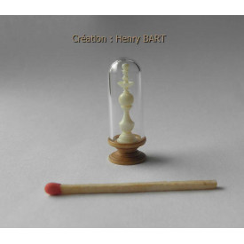DÉCORATION en ivoire recyclésous globe verreBase en buisTournage d'art miniature échelle 1/12èmeHauteur totale = 34.94 mmDiamètre = 12.10 mmLa DÉCORATION sous globe