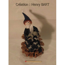 Visage peint, yeux mobiles collés, cheveux roux en mohair.