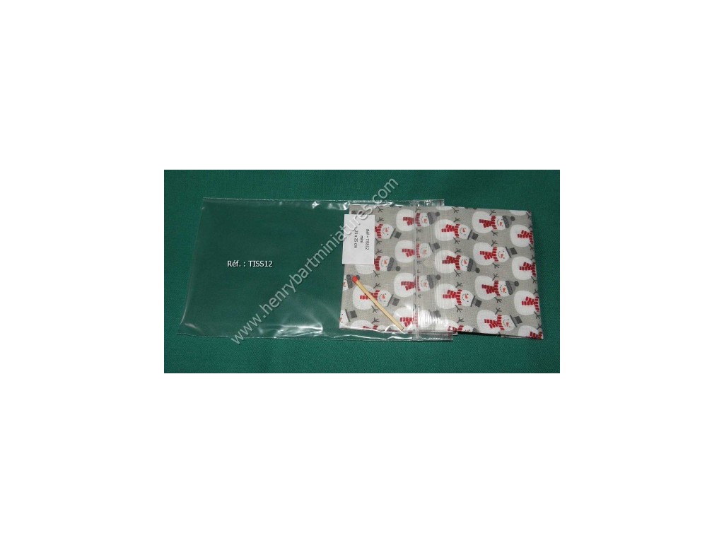 TISSUCoton fin fond GRIS/motif BONHOMME DE NEIGEDimensions du bonhomme = 30 x 20 cmLe coupon de 25 x 25 cm