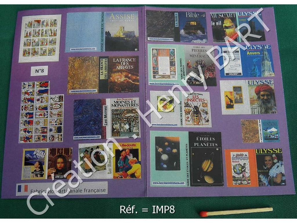 PLANCHE IMPRIMÉE format A5 à découperMiniature échelle 1/1216 sujets divers pour réalisationLIVRES et JEUX de CARTESLa planche