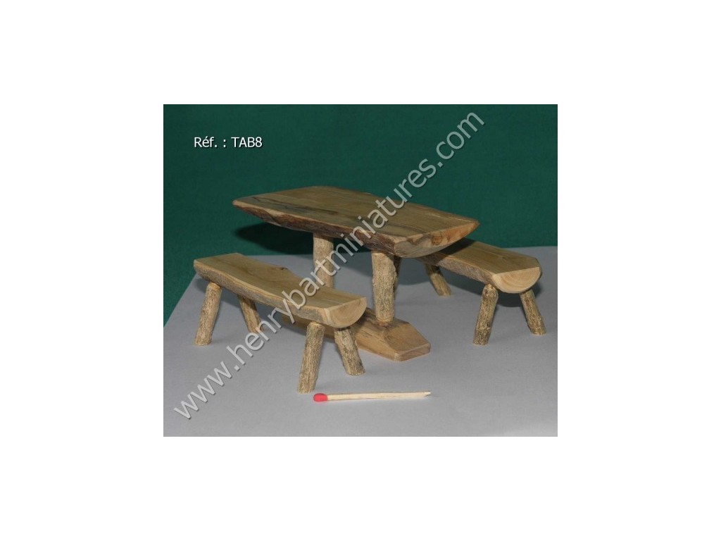 1 ENSEMBLE de 2 BANCS + 1 TABLE à 3 pieds et étagère intégrée