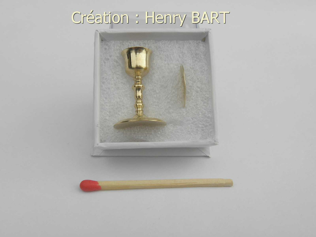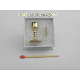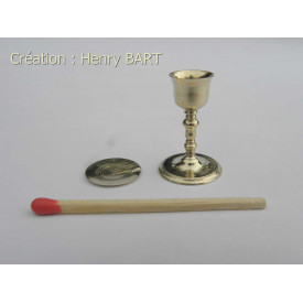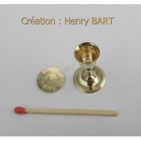 CALICE en laiton avec sa patèneTournage d'art miniature échelle 1/12èmeHauteur calice = 23.68 mmDiamètre coupe = 10.05 mmDiamètre patène = 13.68 mmL'ensemble CALICE + PATENE