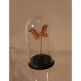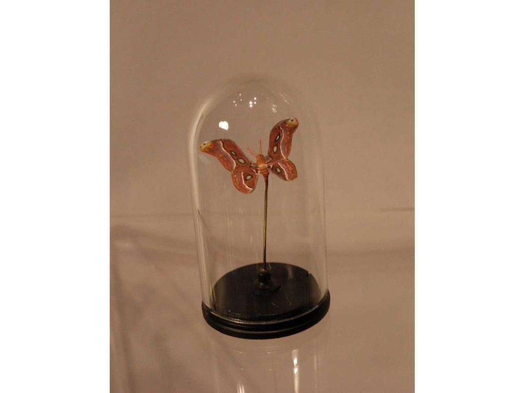 Globe façon Napoléon III contenant un papillon exotique "ATTACUS ATLAS" peint à la main recto/verso, monté sur tige et micro-socle.