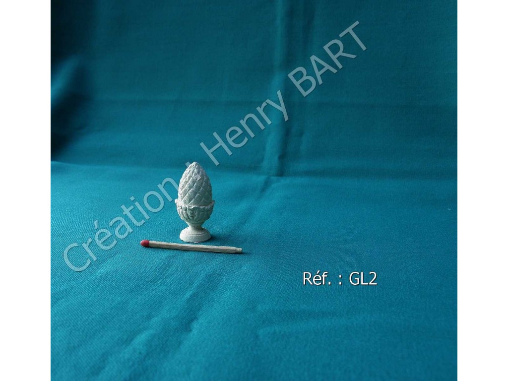GLAND décoratif TON PIERREaspect structuré façon pomme de pinminiature échelle 1/12A base de pierre reconstituée.Dimensions du gland : hauteur 39.2 mm x Ø 19.5 mmLa pièce