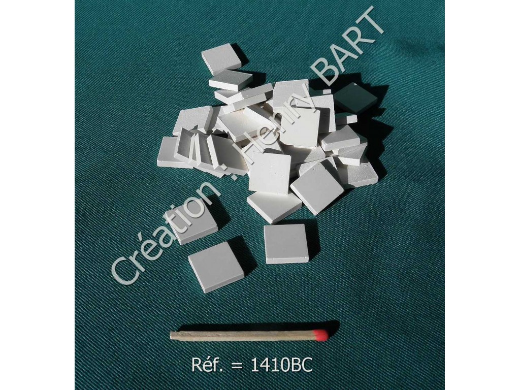 CARRÉ couleur BLANCCarrelage miniature échelle 1/12 épaisseur 3 mmAspect lisse et calibréA base de pierre reconstituée.Dimensions du carré : 14.1 mm x 14.1 mmLe sachet de 64 pièces, soit environ 130 cm2