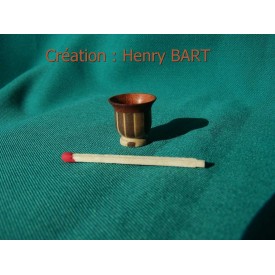 Assemblage de bois exotique,noyer, ramin et buisTournage d'art miniature échelle 1/12èmeHauteur totale = 17.50 mmDiamètre maxi = 18.20 mmLe VASE