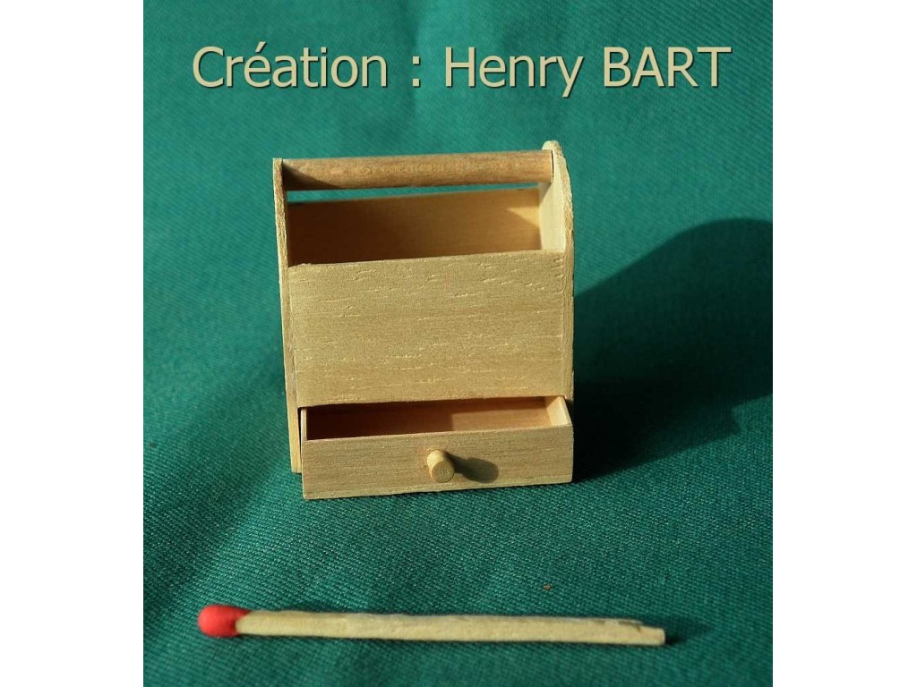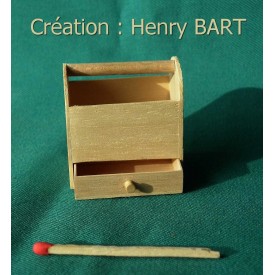 CAISSE A OUTILSen ramin brut non ciré, non vernis.Anse en hêtre amovible.Dimensions = 35.5 x 37.2 x 24.6 mmHauteur du tiroir = 7.6 mmMiniature échelle 1/12èmeLa CAISSE A OUTILS