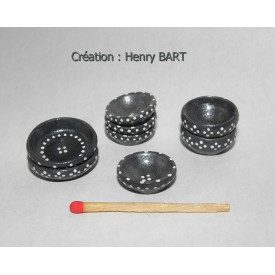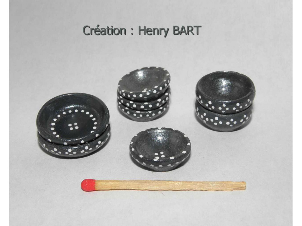 ENSEMBLE de vaisselle gris métallisé/points blancsEntièrement peintet décoré à la mainpar nos soins.Miniature échelle 1/12èmeL'ENSEMBLE de 8 pièces
