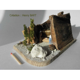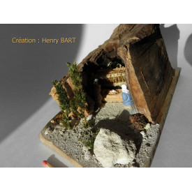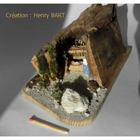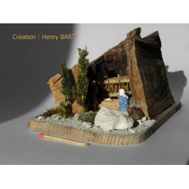 Dimensions : 180 x 105 x hauteur 90 mmSocle en chêneStructure en bois naturelSol en pierre naturelleDécors = plantes séchées, etc ...Nativité peinte à la mainHauteur Saint Joseph = 30 mmPièce unique de collection