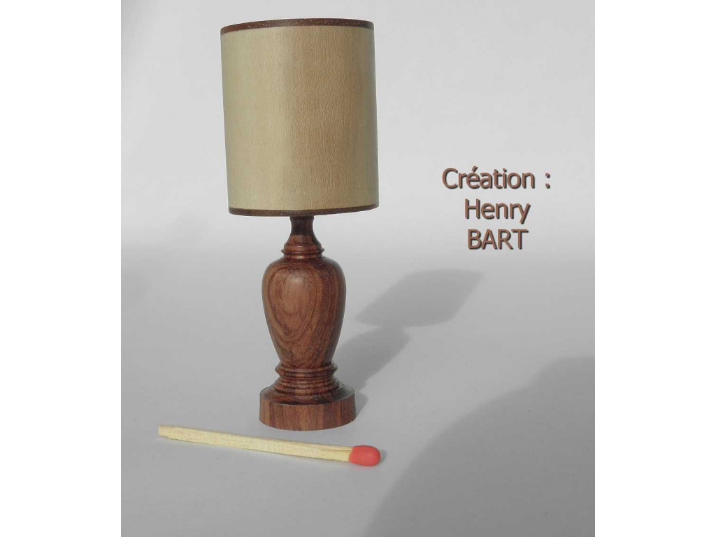 Abat-jour en houx/filets bois exotique monté sur support laiton.
