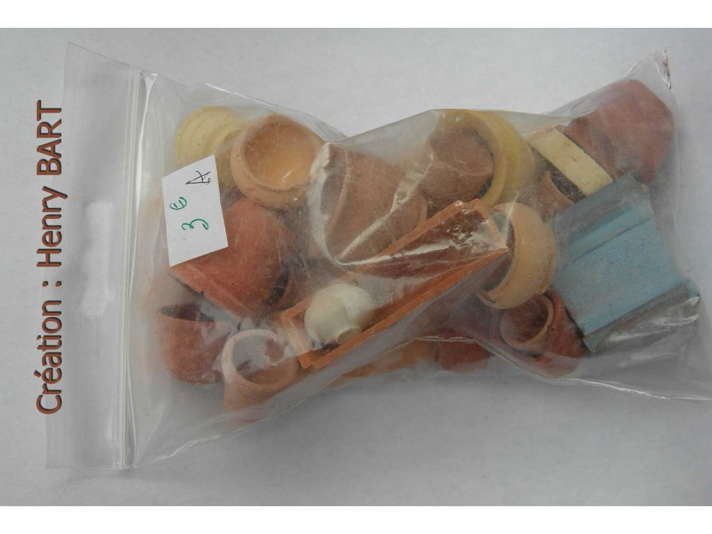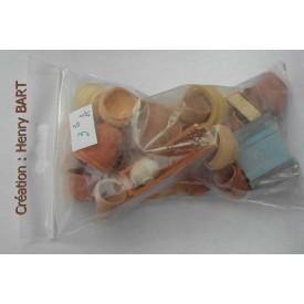 LOT de poteries déclassées(défauts et certains éléments cassés)A base de pierre reconstituée.En mélange de formes etcouleurs aléatoires.Miniature échelle 1/12èmeCe lot est conforme à l'image.Le lot de POTERIES