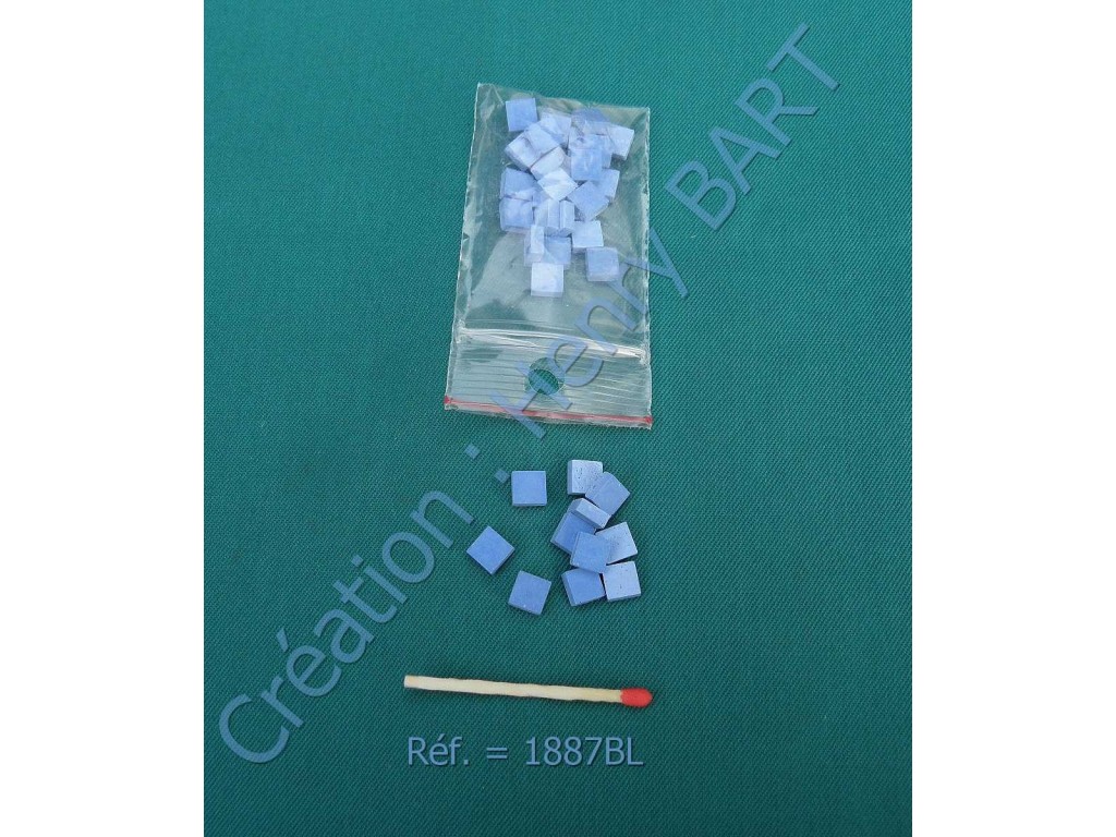 CABOCHON carré couleur BLEUMiniature échelle 1/12 épaisseur 3 mmA base de pierre reconstituée.Dimensions du cabochon : 7 x 7 mmConvient pour les références de CARRELAGES :1410, 1880, 1881, 1882, 1883, 2850.Le SACHET de 36 PIECES