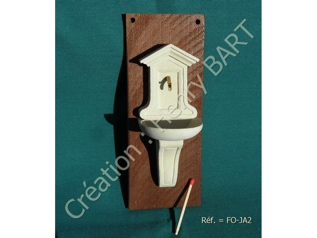 FONTAINE de jardinMiniature échelle 1/12A base de pierre reconstituée.Dimensions : Hauteur 121 mm - Largeur 50 mmProfondeur vasque 48 mmTrous d'alimentation et d'évacuation : Ø 3 mmSupport bois non fourni.Le kit de 4 éléments