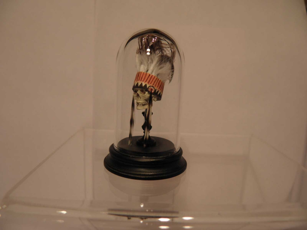 Globe façon Napoléon III contenant un crâne peint à la main,