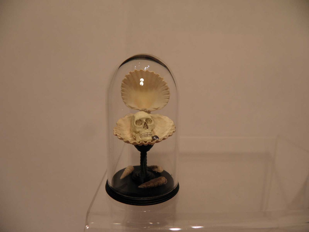 Globe façon Napoléon III contenant un coquillage entrouvert,