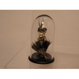 Un éventail orné de plumes, fait main, posé devant le pied.