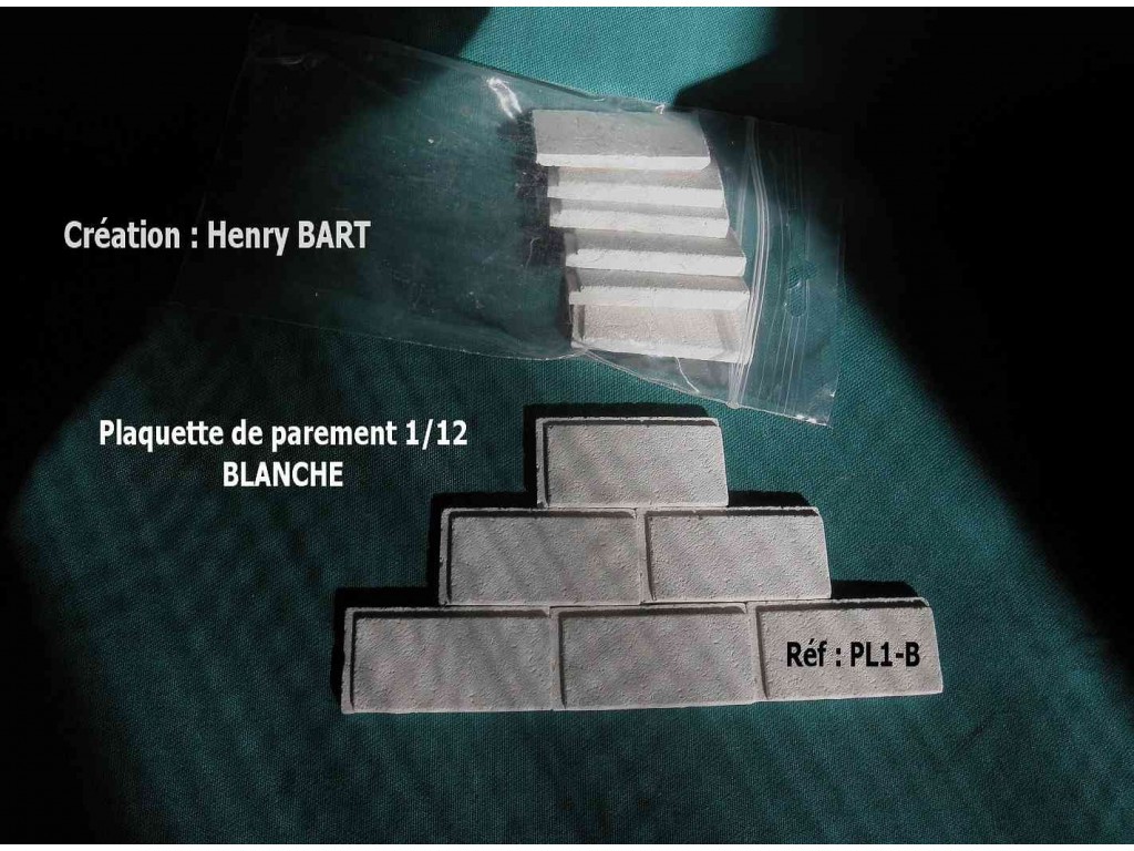 PLAQUETTE de PAREMENT moulurée BLANCHEMiniature échelle 1/12 épaisseur 5 mmA base de pierre reconstituée.Dimensions de la plaquette : 21 mm x 41 mmLe sachet de 12 pièces