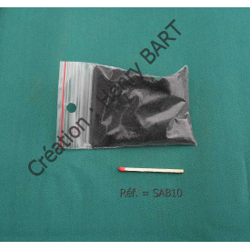 CORINDON finpour décor jardin miniaturecouleur = noir brillantGranulométrie : inférieure à 1 mmMise en garde : produit extrêmement abrasif, dureté exceptionnellePeut couvrir une surface de 100 cm2 sur une épaisseur de 2/3 mmle sachet