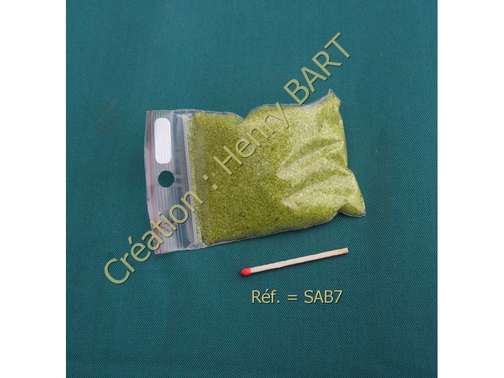 SABLE DE DÉCORATIONpour décor jardin miniatureteinté vert pommeGranulométrie : 0/1Peut couvrir une surface de 100 cm2 sur une épaisseur de 2/3 mmle sachet